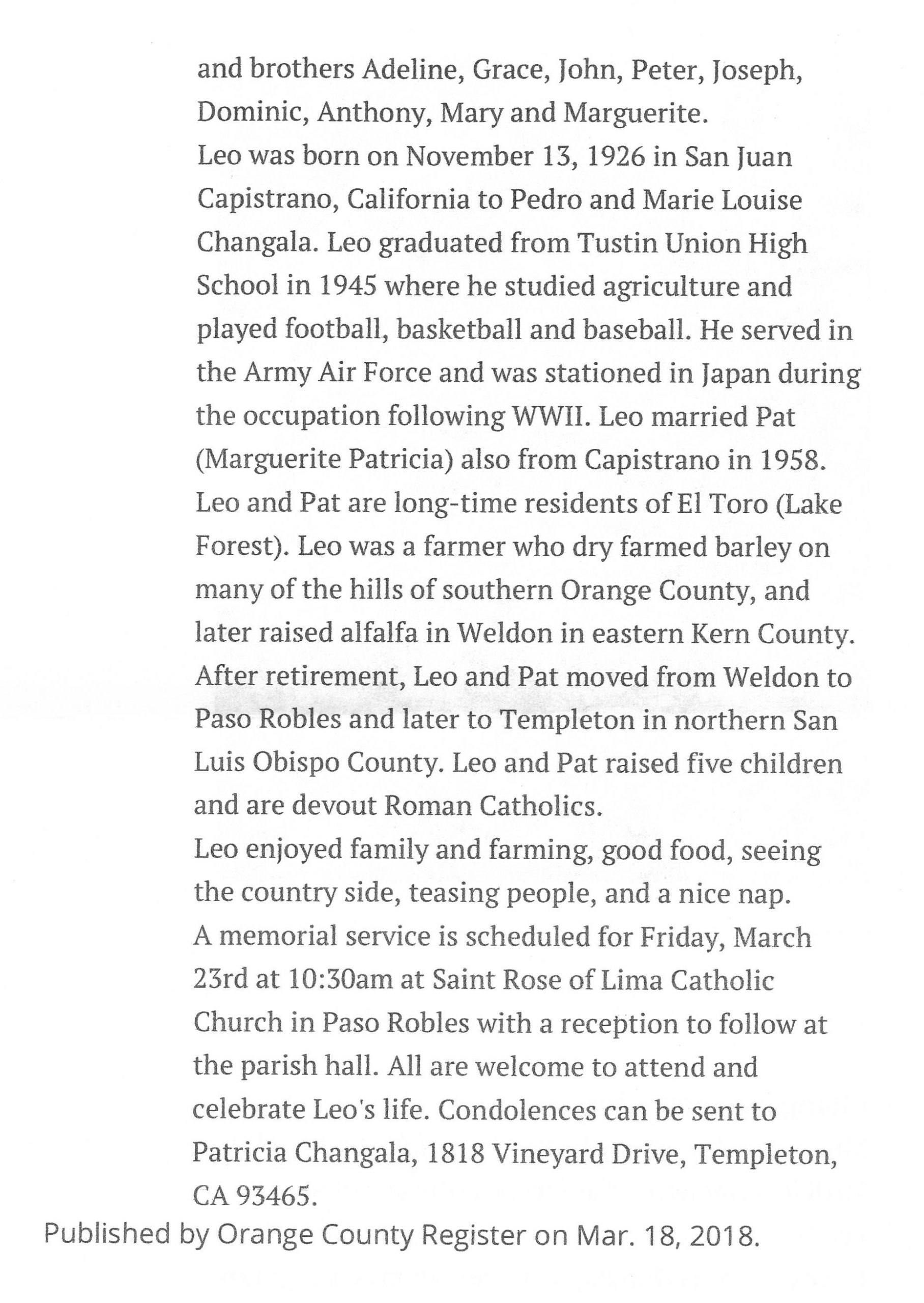 Changala_Leon_ John_Obituary Changala, Leon John 2
