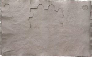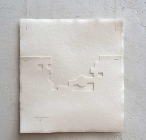 Chillida was a multidisciplinary artist, and etchings and sculpture were his great passions. He used sculpture to make etchings and used etchings to make sculptures. One of the results of this interesting combination was what he called Gravitations, which emerged in the 1980s. These are collages in which the elements are not glued together, but one end of each element is sewn together with a thread, suspending them in the air while they gravitate in space.