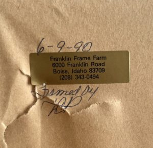 Label on the back of the artwork with information about the company that framed it.