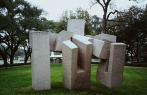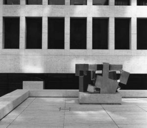 During his long career he exhibited his work in museums, galleries and art fairs around the world. In the USA he participated in more than forty exhibitions, including individual and group ones. Today there are many U.S. museums that have works by the Basque artist in their collections, such as the Solomon Guggenheim Museum in New York, among others. Some of these works are stored in the collections of these museums while others are displayed in their galleries, such as Aizian (1958) exhibited at the Carnegie Museum of Art in Pennsylvania. Others, however, are displayed outside, within everyone’s reach: De Musica, Dallas XV (1989, Morton H. Meyerson Symphony Center, Texas), Alrededor del Vacio V (1970, inner courtyard of the World Bank, Washington D.C.) or Abesti Gogorra V (1966, Museum of Fine Arts in Houston).