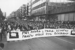 Demonstration on March 17, 1989 in favor of ETA’s non-violence. Photo by Luis Michelena and provided by El Diario Vasco.